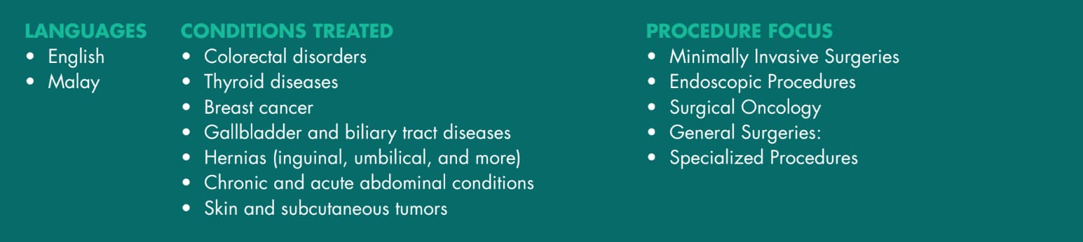 Dr. Shapiee Bin Abd Samat ialah Pakar Perunding Pakar Bedah Am yang terkemuka dengan lebih 25 tahun pengalaman dalam bidang perubatan. Alumni Universiti Kebangsaan Malaysia (UKM) yang berbangga, beliau telah menamatkan pengajian Doktor Perubatan (MD) pada tahun 1997. Didorong oleh minat mendalam terhadap pembedahan, beliau mengikuti dan memperoleh Sarjana Perubatan dalam Pembedahan Am dari Universiti Sains Malaysia (USM) pada tahun 2006.